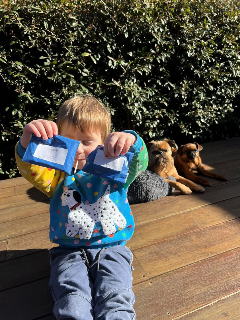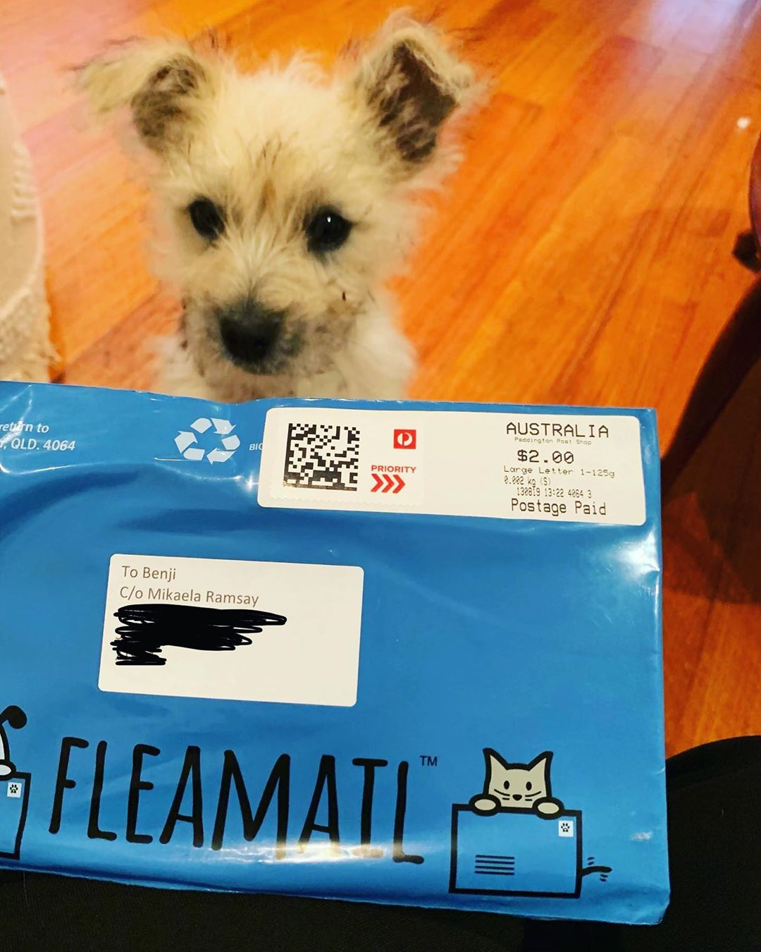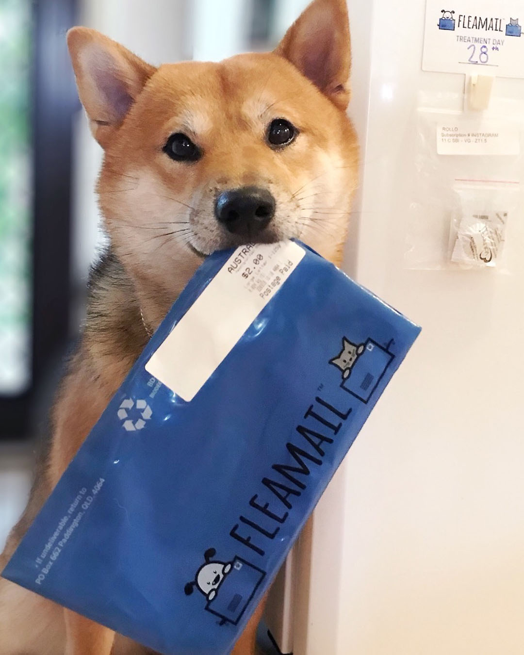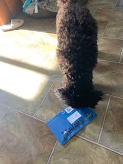 “When the blue pack arrives, give it to your pooch”.
